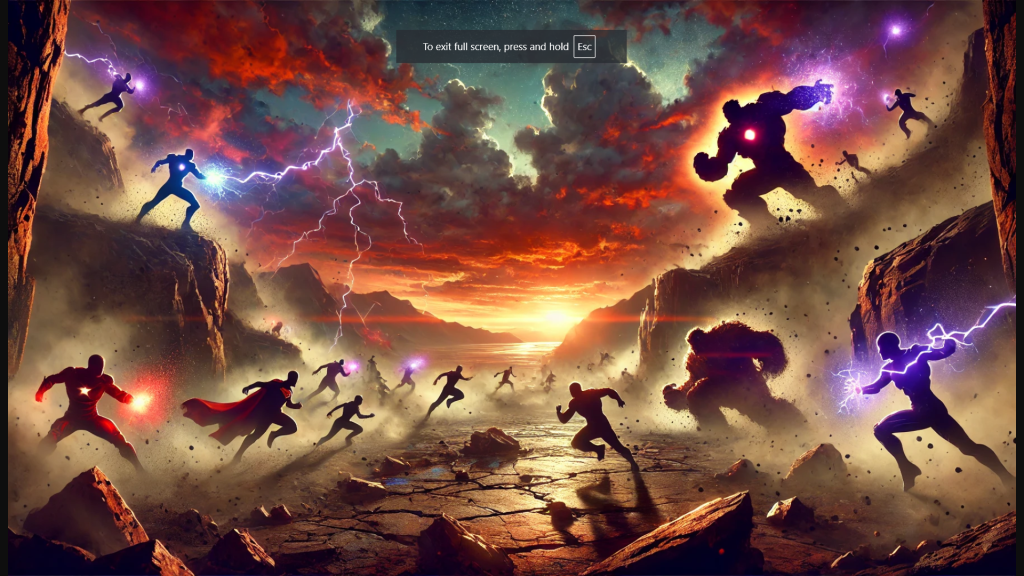 - The Battlefield (East): A rocky battlefield where superheroes clash during dusk. Platforms: Red.