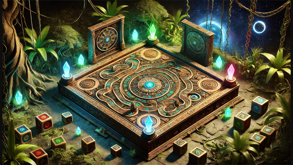 The journey of the tokens across the Seven Worlds to the holy Pillars of Acolyte—the silver pedestals surrounding the crystal ball at the center of the board.