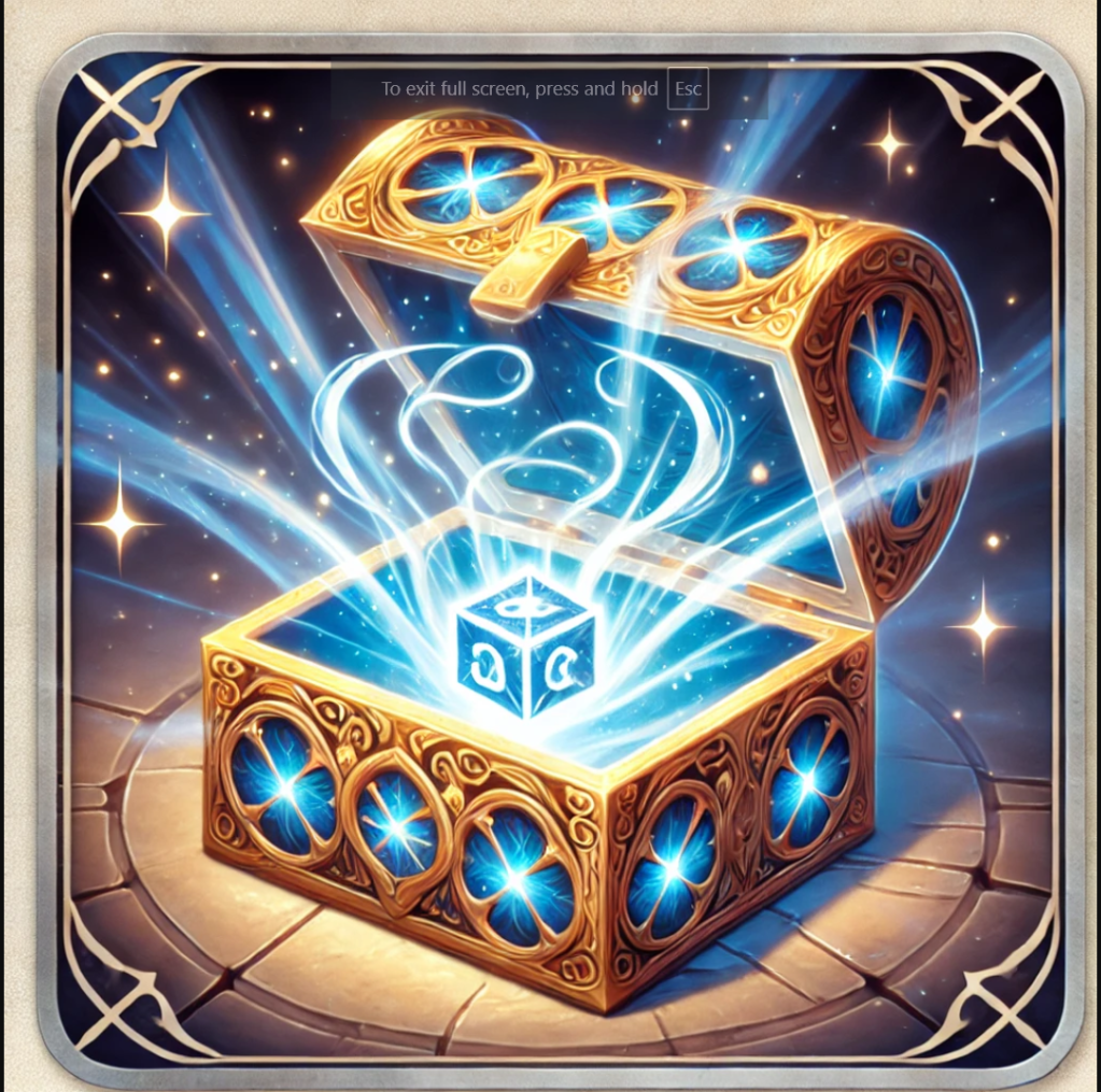 A sky blue and gold chest that automatically opens when a token lands on a Fate Space. Inside is a silver deck of Fate Cards.