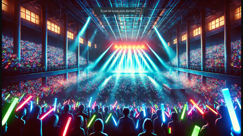 - The Concert (Southwest): A dark concert hall filled with fans waving glowsticks. Platforms: Magenta.