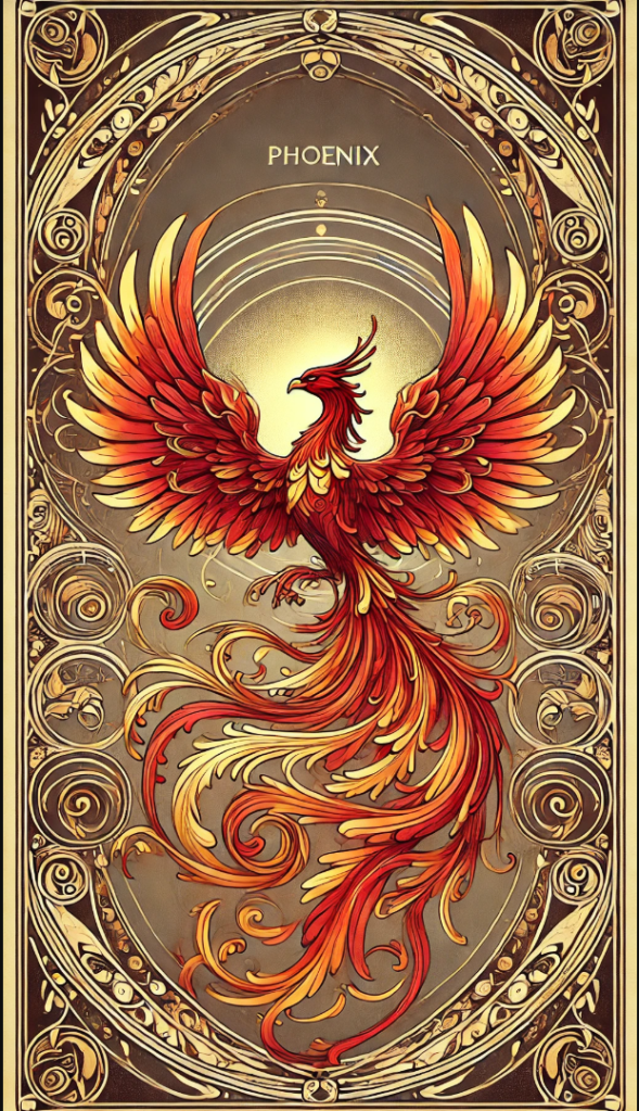 The Phoenix is a legendary bird in Greek mythology associated with rebirth, immortality, and renewal. It is said to live for centuries before bursting into flames and rising anew from its ashes, symbolizing the cyclical nature of life and regeneration. Often linked to the sun god Apollo, the Phoenix represents eternal life, transformation, and divine power.