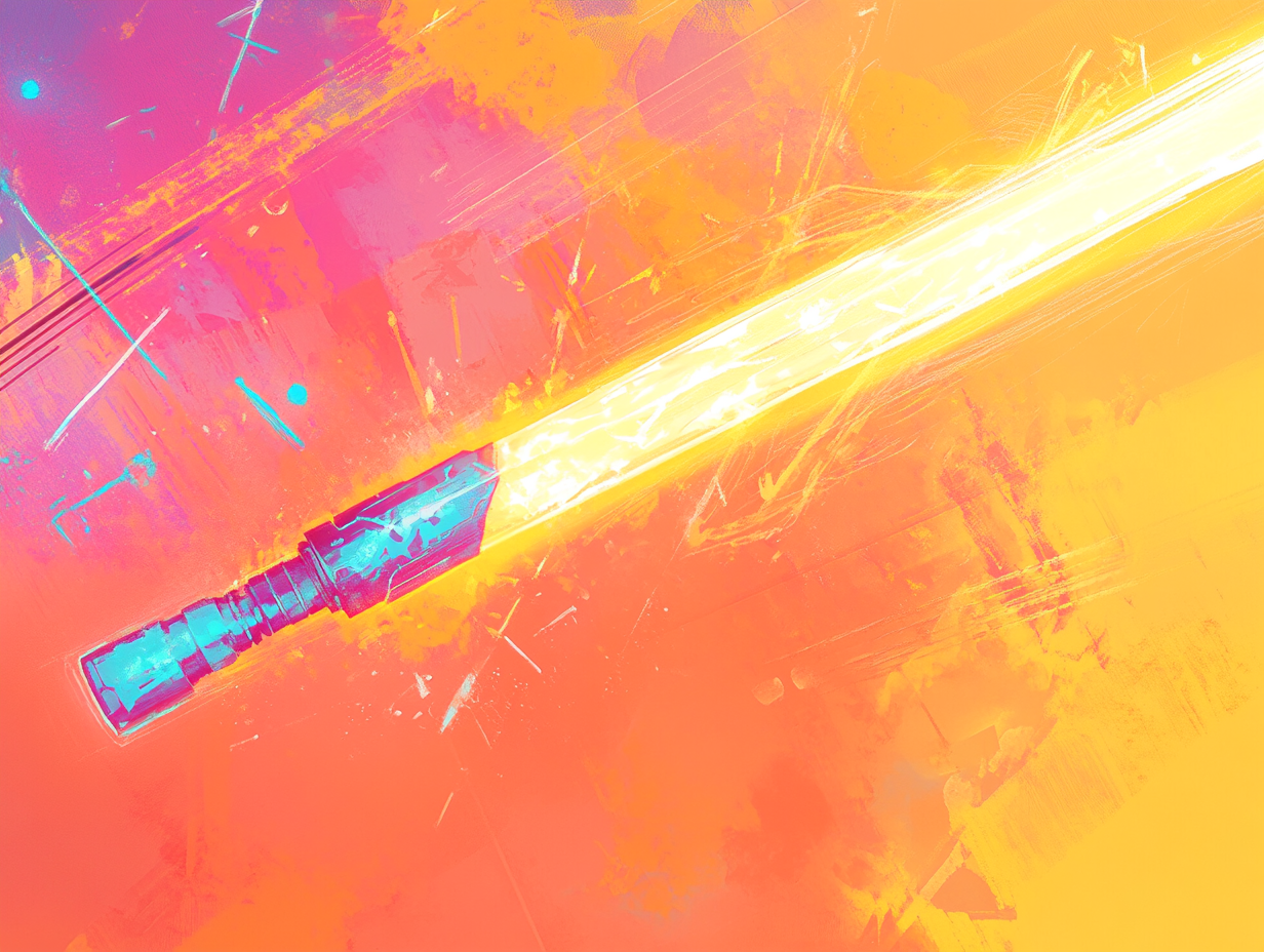 Oppa Rockstar can channel his energy into just two glowsticks—cyan and magenta—each enhanced with fortified handles. When fully powered, the glowing rods extend and thicken, transforming into twin short swords of pure light.
