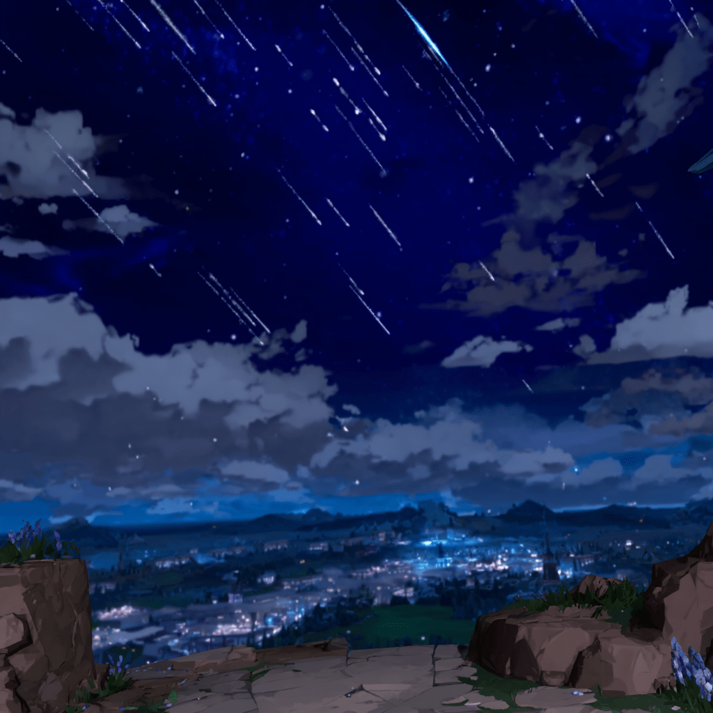 A single blue-white shooting star blazes among the falling meteoroids with intensity that clearly distinguishes it from the regular meteor shower content. This isn’t just another piece of cosmic debris—this is something that appears to be specifically connected to Topher’s wish-making activity and responding with targeted magical energy that suggests his request for reality alteration might actually be getting processed by forces beyond normal astronomical phenomena.