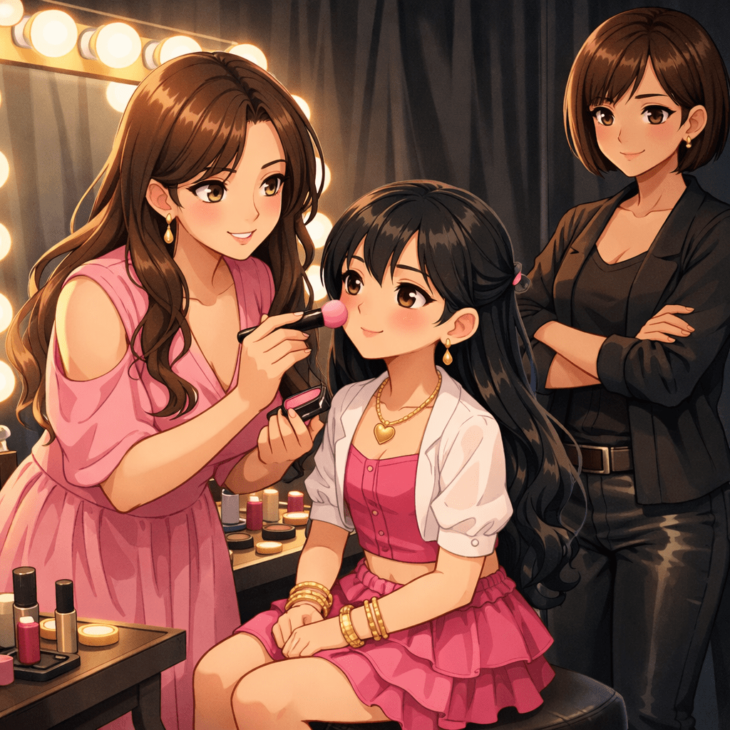 “Just a subtle touch,” Thalia says, her voice carrying the confident authority of a professional who knows her craft inside and out. “It’ll bring out the softness in your makeup. After all, you’re the star of a children’s fashion show.”