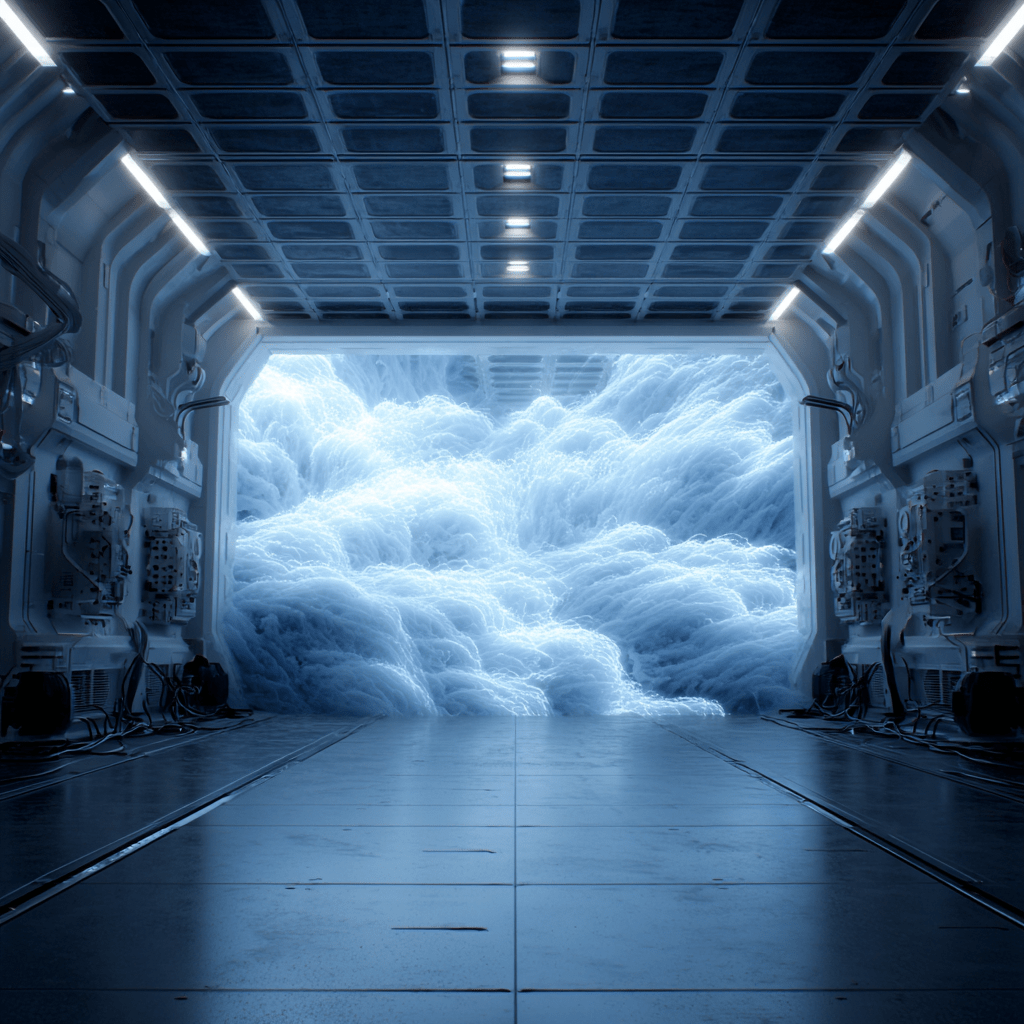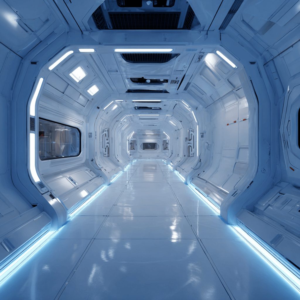 No windows. No portholes. No view of actual space, which is ironic considering I’m floating somewhere between the stratosphere and the asteroid belt in my own spacecraft. The walls, floor, and ceiling are seamless and brilliant — not clinical white, not eggshell white, but that specific shade of white you get when all wavelengths of visible light decide to show up to the same party at exactly the same time.
