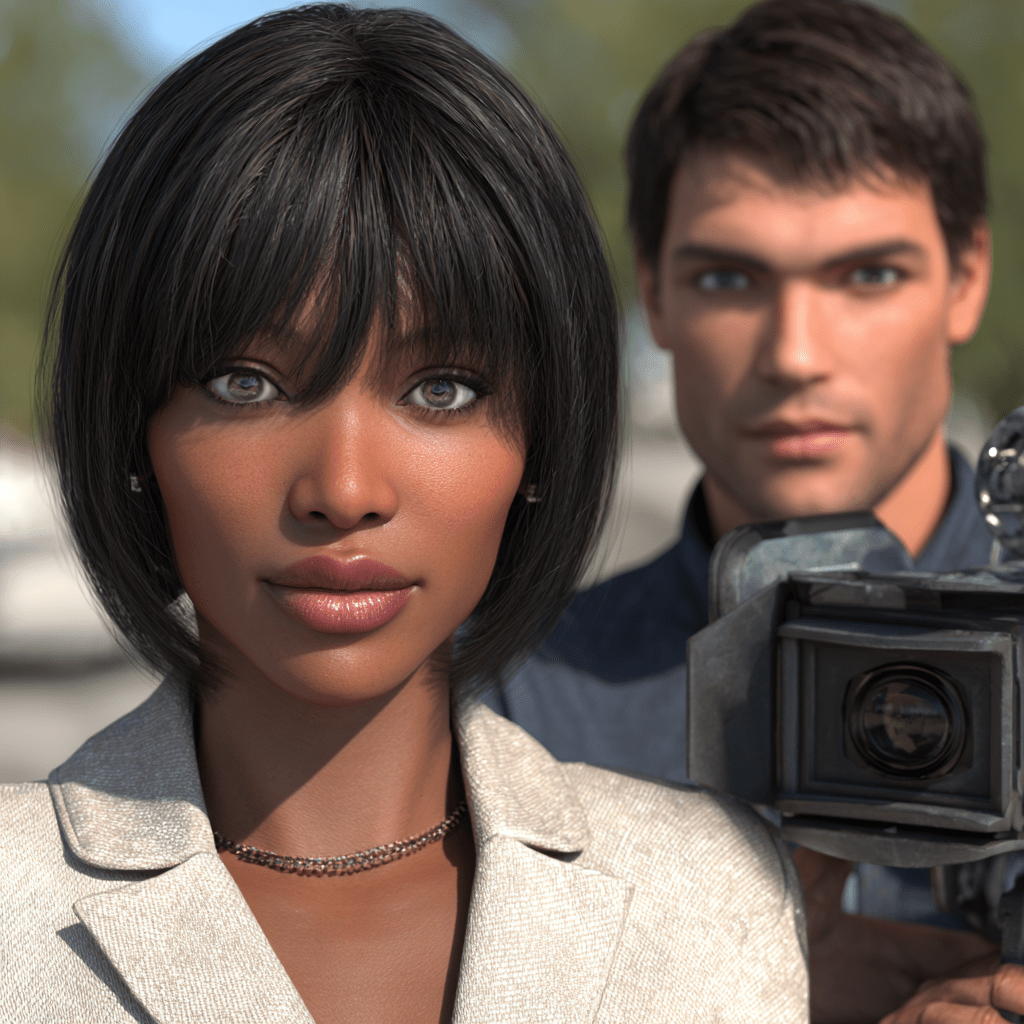 She’s positioned herself at the far edge of the rooftop and she is vibrating with barely contained professional excitement. Stout frame, bob-cut hair framing a round face, and wearing — I have to look twice — what can only be described as a cowgirl-inflected blazer situation, the kind of outfit that communicates “I take my job seriously and also I have a personality.” Beside her, a young cameraman with an objectively very good jawline has the camera already up and running. She bites her knuckle. Her eyes have gone soft and slightly unfocused.