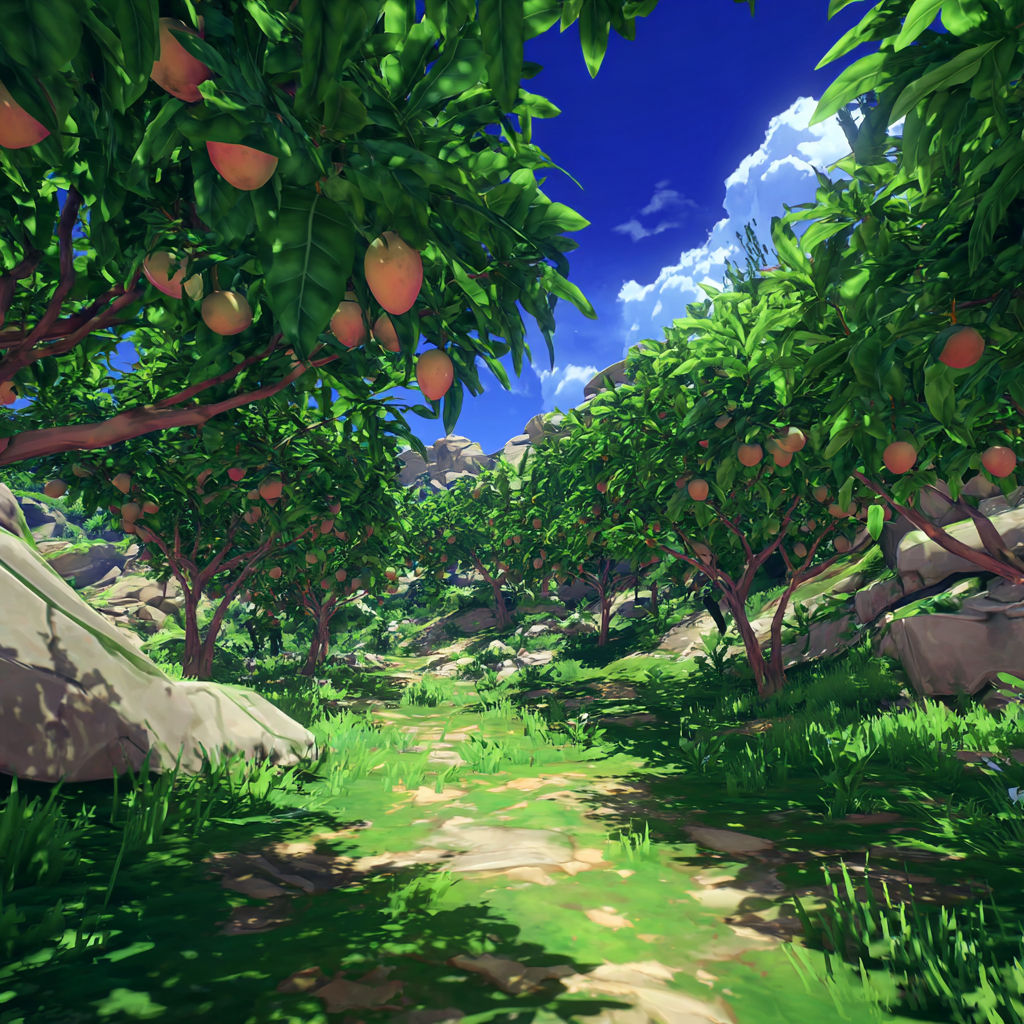 The mango orchard stretches out like something from Stardew Valley if it got a tropical graphics update and infinite fruit spawns. Rows of mango trees heavy with golden fruit create natural corridors under the afternoon sun, while the sweet scent of ripe mangoes hangs in the air like nature’s own aromatherapy session.